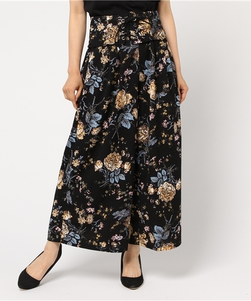 今季のマストトレンドでもある花柄ワイドパンツが、同じく人気のコルセットベルト付きで登場! しっかりウエストマークできる太幅コルセットで、お腹周りをほっそりスリムに演出。 ジャージのような心地よい伸び感の素材なので穿き心地抜群です。 このボトムひとつあれば、トレンドコーデが悩まず完成するお得&おしゃれなアイテム! オフホワイトのみ裏地付き。 [クリーニング] 洗濯機洗い可(弱く)ウェットクリーニング(W) [洗濯方法] オフホワイト:手洗い可 ドライクリーニング(W)