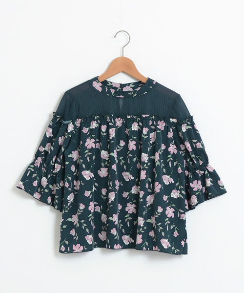 トレンドライクなフラワー柄とガーリーなチュール素材を組み合わせた、女の子らしさを演出するブラウスが登場☆ さらりと滑らかな手触りの生地と透け感のあるチュールで、袖口のふわクシュっとしたデザインがポイントです。 ほんのりとクラシカルなムードも漂うアイテムは、インスタイルも抜群に決まりデイリーにおすすめです◎