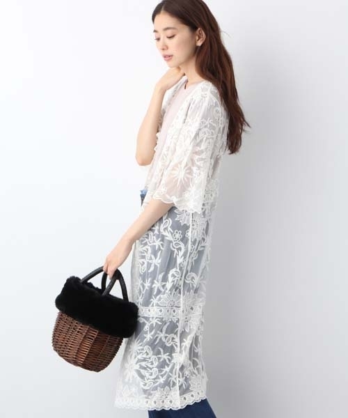 総レースとロング丈が女性らしいガウンコート。 シンプルなスタイルにさらっと羽織るだけで今年顔に! 気兼ねなくコーデにプラス出来るベーシックカラーはデイリー使いにオススメです♪
