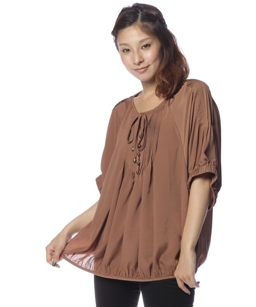 程よくからだから離れるシルエットとラグランスリーブでリラックスした雰囲気に仕上げたブラウスです。パンツスタイルとの相性が抜群です。店舗にてお問い合わせの際は以下の品番をお申し付け下さい。A0109FB211 model:H168 B78 W60 H87 着用サイズ:フリ-