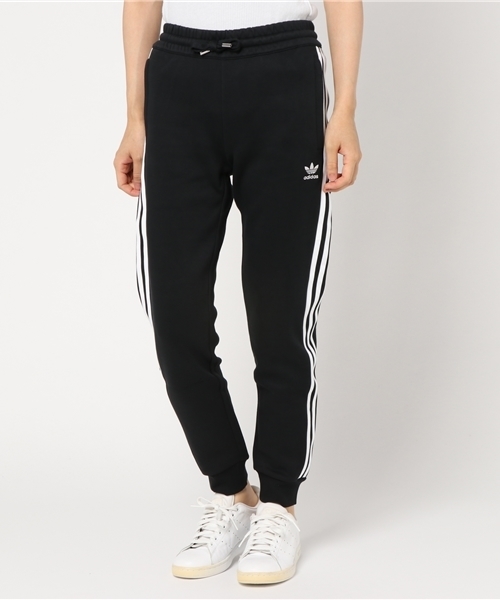 カーゴパンツのカジュアルな雰囲気が新しい「3 STRIPES TRACK PANTS」は、白X黒のスタイルで、ソフトな感触のダブルニット生地が見栄えのするパンツの形を保ってくれる。