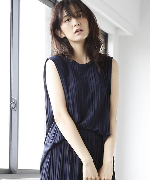 ランダムなプリーツがニュアンシーなムードのプルオーバー 肌当たり抜群のソフトなカットソー素材×細やかなプリーツが豊かな表情を生み出すノースリーブカットソー。 きっちりとしたプリーツとは異なるラフ感、ヌケ感が楽しめます。 程良い余裕ラインで気負いなく着こなせるのもポイント。 同シリーズのランダムプリーツスカート(品番:76706097051)とのセットアップもおススメです。 ※取り扱いの際は、取り扱い表示をご確認の上、次の点に十分ご注意ください。 ・白・淡色とのご着用時にはご注意ください。 ・汗・雨など濡れた状態で他の物と一緒に重ね合わせないでください。 ・汗・雨など濡れたままでのご着用はお避けくださいませ。 ・染料の特性上、色落ちしますので他の物とのお洗濯はお控えください。 ・直射日光や蛍光灯の長時間照射により色あせすることがあります。 ※実店舗と発売時期が異なることがございます。 あらかじめ御了承下さい。 ※商品サンプルにて撮影しております。若干の仕様変更が生じる場合がございます。 ※撮影場所やお使いのモニター環境により若干お色味が異なる場合がございます。 店舗へお問い合わせの際は、全国のコーエン各店舗まで下記の品名/品番をお申し付け下さい。 品名:CC ランダムプリーツ N/SL 品番:7625-609-7101