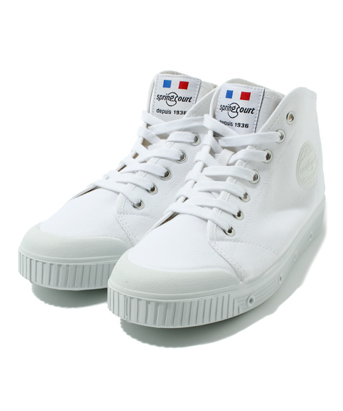【spring court(スプリングコート) :1936年フランスで誕生したどこまでも爽やかで快適な履き心地を提供するスニーカーブランドです。そのスニーカーは、当時から「スプリングが入っているかのようにテニスコートを飛んだように走れる」と話題になり、今尚その履き心地は、人々を魅了し続けています。 spring courtのスニーカーが人々を魅了し続ける秘密は、アッパー・インソール・靴ひもが Cotton 100%で作られており、履き込む程に柔らかく足になじみます。また、丸洗いが可能です。さらに本体サイドに左右4個ずつの空気穴を搭載、外気を取り入れます。そのため素足で履いても蒸れることはありません。インソールはミントの香り付きでほのかに香ります。 1952年の開発から変わらない伝統のヴァルカナイズ製法で1足ずつ手作りされています。老若男女問わず愛されるのは流行に左右されない「シンプルで快適な」デザインであるからでしょう。】 店頭にてお問い合わせの際は、下記の品番をお申し付けください。品番:A0536PSH239