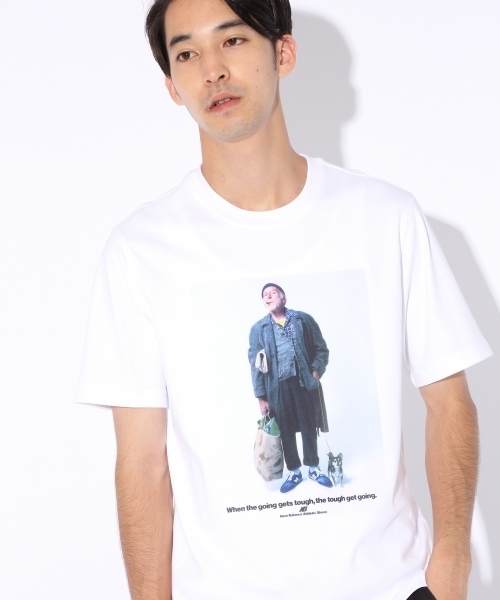 プリントが印象的なニューバランスのTシャツ。シャツのインナーや一枚着でもポイントになること間違いなし。