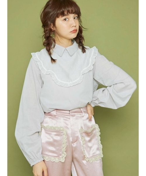 ジョーゼットのbodyにオーガンジー素材のドッキング。スカラップとフリルのディディールでもしつこくなく、着回しも◎