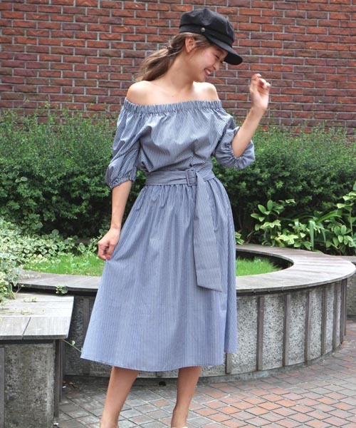 清涼感溢れる大人ガーリーなストライプ柄のブラウス&スカート&ベルトのセット。ブラウスは首周りがゴム仕様になっており、デコルテが綺麗に見えるネックラインに。スカートはベルトが取り外しが可能なので、シンプルなフレアスカートとしてもお使いいただけます。セットアップではもちろん、単品使いもできるから一枚あればコーディネートの幅が広がります♪