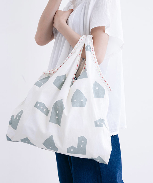 おうち柄のパターンと持ち手のステッチがどこかほっこり、可愛らしいバッグですインド綿100%の優しい肌触りもポイント◎ 軽い1枚布でつくった、A4サイズも楽に入る容量のバッグなので普段のお出かけ用にプラスしたいときにおすすめです ※この商品はインド製品です。 インド独自の風合いをお楽しみいただくためにインドで作られた生地、付属品を使用しております。 ※素材の特性上、汗・水・摩擦等により色落ち・色移りをする恐れがありますので、ご着用・洗濯などの際は、充分にご注意ください。 ※その他お取り扱いに関しましては、商品に付属のアテンションタグをご覧ください。