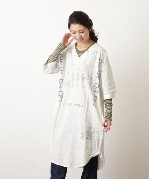 一枚着るだけで形になるフィードサックワンピース。体を包んでくれるようなゆったりとした着心地感は、一度来てしまうとやみつきになってしまいます♪胸元から全体に広がる染み込みかすれプリントも、初めて着た時から小慣れた感を出してくれます。 楽ちんだけでど大人カジュアルな雰囲気もつくってくれるそんな一枚です。