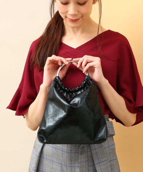 メタリックなキラメキをコーデに添えれば印象もガラリと華やかに。今期のワンポイントに投入したい、シャイニーなキラメキが魅力のバッグ。 リングハンドルで今年らしい表情を添えているトレンドデザインで、コンパクトなサイジングはちょっとしたお出かけなどに必要最小限のものだけを入れるのにぴったり。 これひとつ合わせるだけでシンプルコーデも格上げが狙えます。 秋冬のシックなカラーのアクセントとしてもおすすめ。