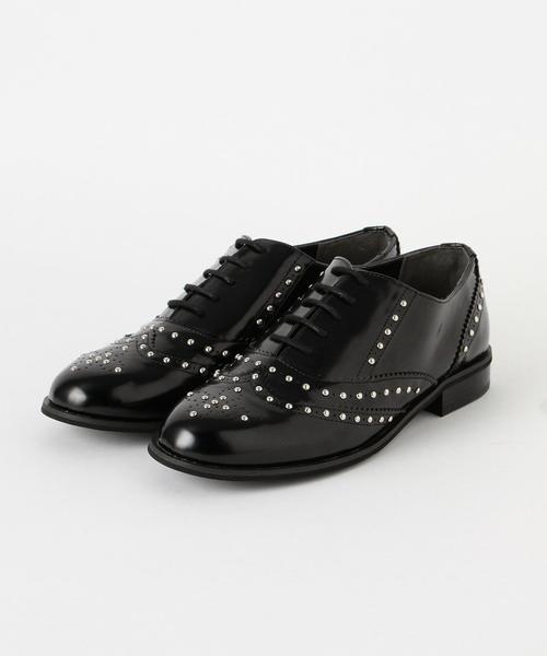 スタッズウィングチップ☆ マニッシュなウィングチップにスタッズを多数施した一足。 シンプルなワンピーススタイルやベーシックなスタイリングの足元にもおすすめ。 フォーマルスタイルの足元にも華やかです。 ※サイズ表記はあくまでも目安です。ブランドやデザインなどによりサイズは若干異なりますのでご了承ください。 ※輸送時に、箱が多少破損することが御座います。予めご了承お願いします。 ※着用、お取り扱いの際は商品についておりますアテンションタグ、洗濯ネームを必ずご確認ください。 アウトレット商品のご説明 ・お買上頂く全ての商品を発送前に規定の検品を実施しています。 アウトレット商品につきましては包装やパッケージに破損・汚れが見られる 場合にも商品に欠陥が認められない際にはそのままの状態でお送り致します。 ・注文取消し・返品・交換対象外商品となっております。 ・お取り寄せ・ご試着対象外商品となっております。