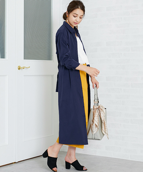 様々な着こなしが楽しめるシャツガウンワンピース。ボタンを留めてワンピースとしてはもちろん、ラフに羽織ってガウンとしても楽しめます!
