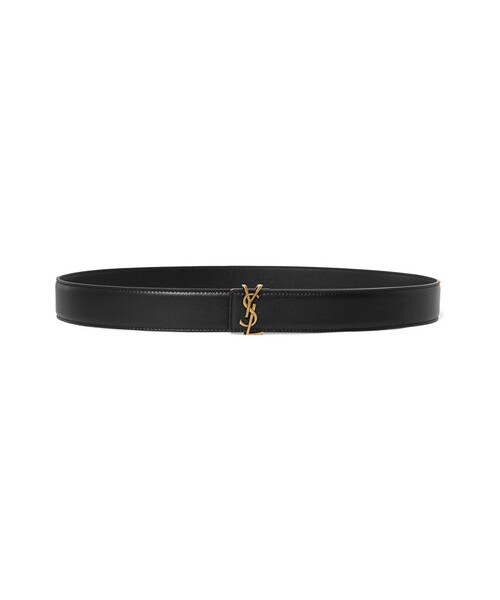 Saint Laurent's belt is centered with the label's signature interlocking 'YSL' monogram, designed by artist and typeface designer Adolphe Jean-Marie Mouron in 1963. This slim piece is made from supple black leather and sits at your slimmest point. Wear yours with everything from tailoring to dresses.