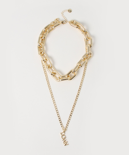 【2 CHAINS N/C】存在感のある太めのチェーンネックレスは、マニッシュなスタイリングと合わせたい。トップのモチーフは取り外すことも可能です。