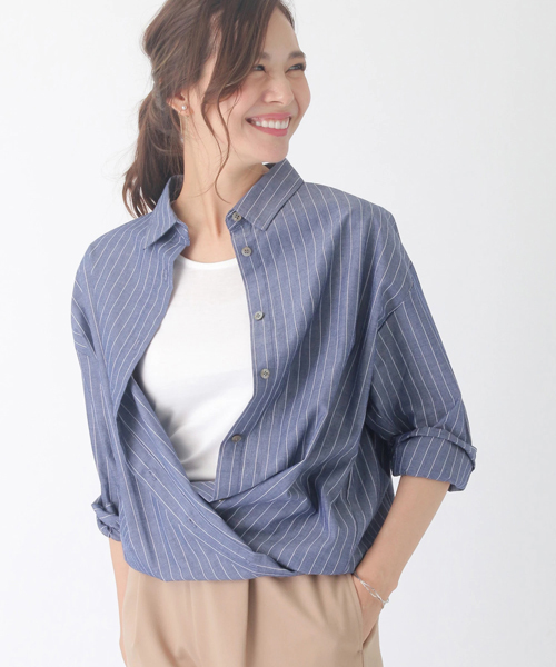 ★ お得なSETアイテム ★ 風合いの軽いコットン素材で仕立てたシャツとレースタンクトップを組み合わせた、お得な2セットアイテムが登場です。シャツはフロントボタンの留め方で、カシュクールにもアレンジできる2WAYデザインが魅力的◎モチーフレースがポイントのインナータンクトップは、シンプルなワントーンカラーにすることでどんな場面でも使いやすさ抜群! デニムと合わせたカジュアルスタイルも、こなれ感のあるスタイリッシュな着こなしに決まるアイテムです。