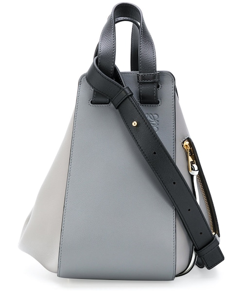Loewe (ロエベ)の、ロゴ装飾 トートバッグ(グレー)。トップハンドル、オープントップ、ショルダーストラップ、サイドにファスナーのディテール。