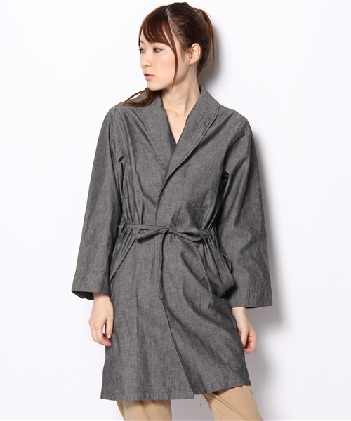 【THE MARMAID】 THE MERMAIDからフーズフー別注モデルのガウンが登場。 ミリタリー調のシャンブレーガウンは大人らしい着こなしに仕上げます。 model:H165 B78 W56 H83 着用サイズ:FREE