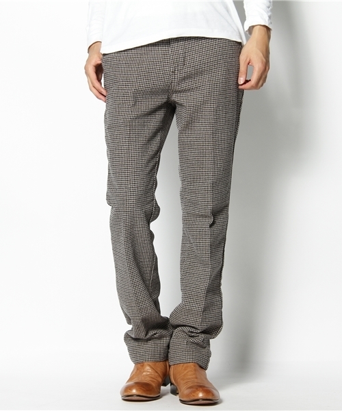 暖かみのあるネップ素材が特徴的なロングパンツ。今期はコートとの合わせでクラシック感のあるスタイリングがおすすめです。