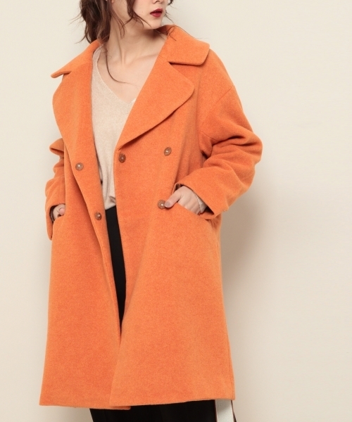 ウール混の生地は、モッサ仕上げで見た目も暖か! 程よくBIGなシルエットは、着回しやすく、適度にカジュアル感を演出してくれます。 大きめの襟で、小顔効果も狙えちゃう! マフラーや、ストールなど、小物でオシャレを楽しみたい方にもぴったりのチェスターです! 定番のグレー・ネイビーはもちろん、明るいキャメル×柄ボトムで少しトラッドにまとめるのもオシャレ!