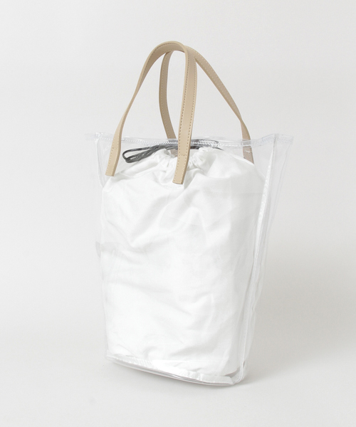 夏に欠かせないPVC素材のトート型クリアバッグが登場。 巾着型の袋が付属しているため、中が見えず、小物を持ち歩く女性にとって嬉しいポイントです。 季節の変わり目には、スカーフやファーアイテムを入れてカスタマイズするのも◎。 クリアデザインだからこそ、永くご愛用できるオススメアイテムです。 重量 : 約290g