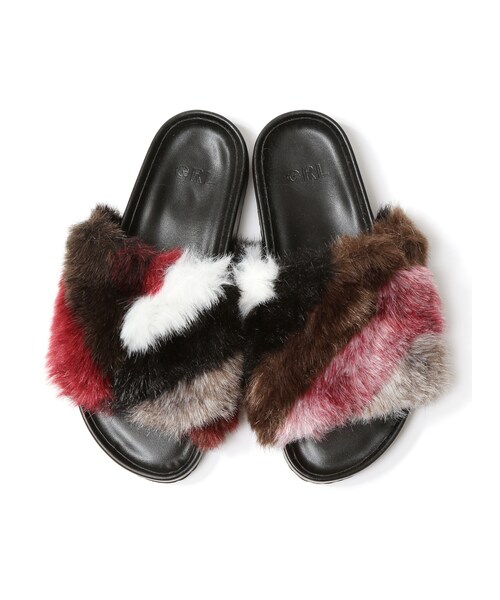 ボリューム感のあるカラフルなエコファーが、とってもCUTEなサンダル♪ サッと履けるコンフォートデザインだから、コーディネートに取り入れやすい!! カジュアルながらもオシャレにキマる、魅力的な1点です♂ ★裁断の関係で、写真とは配色や柄にバラつきが生じます。
