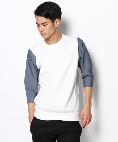 WHO’S WHO gallery(フーズフーギャラリー) 【シャンブレー素材との切替がインパクトのあるカットソー】 WHO'S WHOらしい大胆な異素材切替が特徴的なカットソー。 適度なボリューム感もあり、タイトボトムとのコーディネートがおすすめです。 model:H178 B85 W74 H89 着用サイズ:MEDIUM