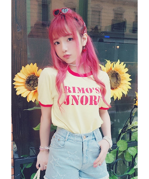 ♡Bobon21 2017S/S New Collection♡ スポーツガーリーなTシャツが新登場 「RIMO'S JNORII」の英字がプリントされています バイカラーの4色展開 ❤黒+ピンク ❤イエロー+赤 ❤ピンク+白 ❤ブルー+ピンク