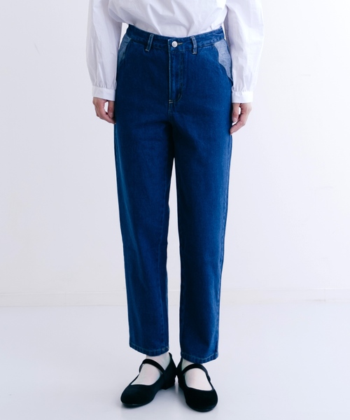 ポケット部分が内側部分の配色にスカラップの型がさりげないデニムテーパードパンツ。スキニーとは違い少しゆるっとしているシルエット。 裾にかけてテーパードになっているのでバランスが取りやすく、様々なトップス・アウターとの相性が良いので着まわし力抜群です♪