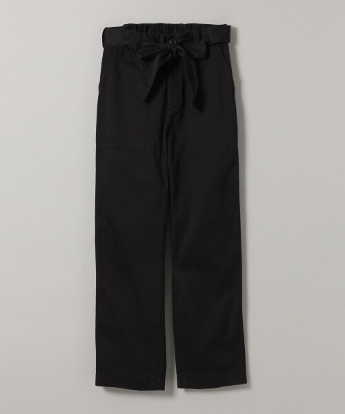 取り外し可能なリボンベルトのついたトレンドのベーカーパンツです!洗いをかけてやわらかくし、アタリをつけた風合いのある生地が特徴☆カジュアルな素材ですが、キレイめにも着ていただけるデザインになっています♪細身のシルエットなのでボリュームがですぎず、裾をロールアップして足首を見せても◎