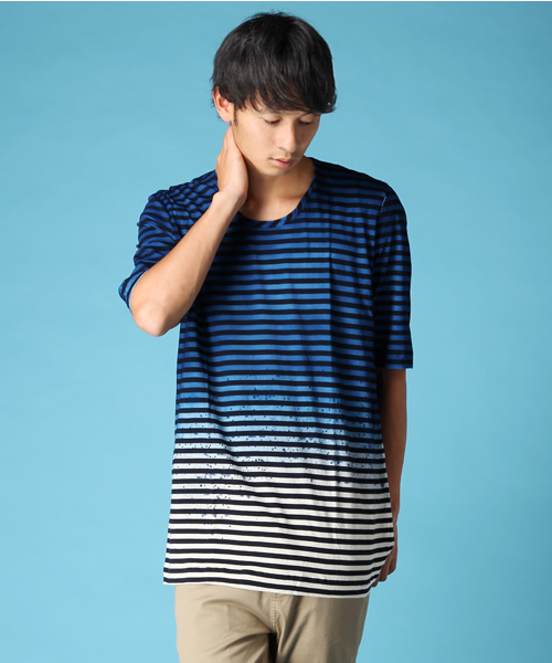 MIDWESTとDIET BUTCHER SLIM SKINのコラボ企画によって生まれた別注Tシャツです。パターン制作、生地選定など細部にまでこだわりMIDWESTとDIET BUTCHER SLIM SKINの世界感が融合されたマストアイテムです。 ブルー×ホワイト、ネイビー×レッドのグラデーションの2色展開です。 【このアイテムはブログでも紹介しております】 MIDWEST OSAKA MENS BLOG↓ http://fashioncore-midwest.com/osaka/men/2012/07/18/post_95/ 【DIET BUTCHER SLIM SKIN】 デザイナー深民尚が2002年にブランドを設立。2006年からショー形式でコレクションを発表。ダイエットブッチャースリムスキンは、ブランドの作り出すイメージ、コレクションともにアート性が高いことが特徴である。 model:H180 B83 W68 H88 着用サイズ:FREE ※画像の商品はサンプルです。 実際の商品と仕様、加工、サイズが若干異なる場合がございます。