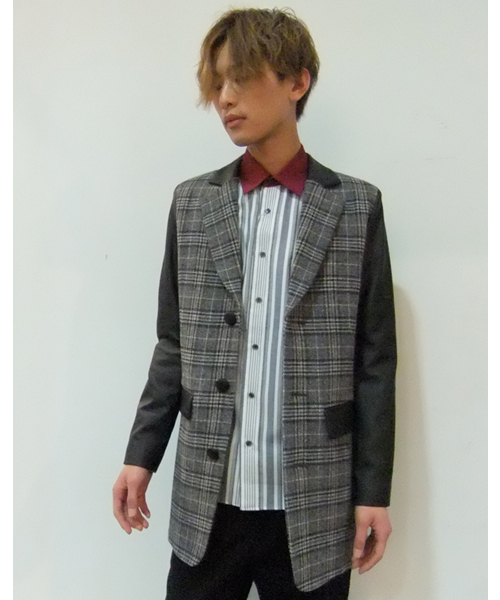 MIDWEST ディレクターズ・レーベル「603」 のチェック× PVCロングジャケットです。 クラシックで定番の型となるチェスターコートの袖をPVC素材に切り替えたハイブリッドなデザインです。 シルエットも細身で、モードに昇華。MADE IN JAPANが誇る、繊細でクオリティの高い縫製も魅力のひとつとしておすすめです。 ☆雑誌VIKKA_vol.3掲載アイテム☆
