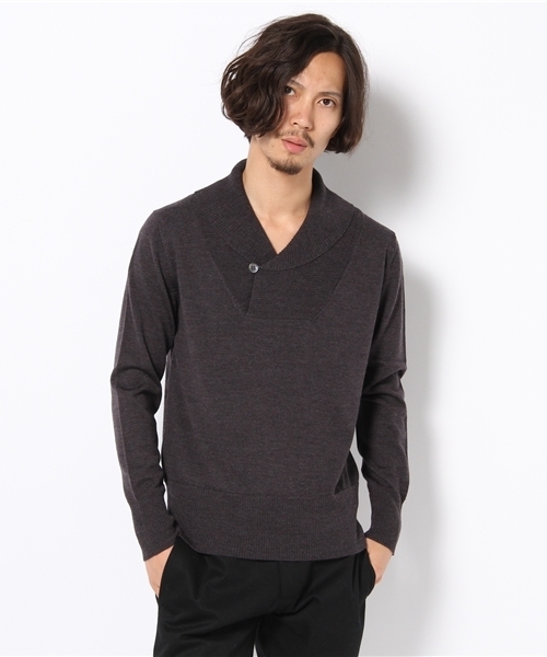 NEBULLA VENTI のショールカラーニットです。 上質なウール100%を使用しています。ネック部分にデザイン性をプラスしたショールカラータイプのニットとなります。さりげなくも洗練された雰囲気を装います。