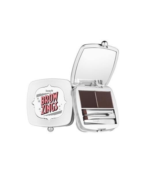 What it is: An all-in-one eyebrow kit that includes everything you need to tame, shape and fill brows.What it does: This kit features a soft, pigmented wax to create shape and definition, and a setting powder to give brows 12-hour wear (on an instrumental test on 20 panelists). Brow Zings is perfectly purse-sized and includes a double-ended brush and mini slant tweezer so you can tweeze, shape, fill and set brows anywhere you go.Kit includes:- Brow Powder (0.09 oz.)- Brow Wax (0.06 oz.)- Double-Ended Brush- Mini Slant TweezerHow to use: Clean up the brow area by plucking stray hairs with the mini slant tweezer. Create shape and definition by applying the soft, pigmented wax to brows with the angled brush. Use the blending brush to apply the setting powder, which fills in sparse areas and locks brows into place for 12 hours.Pro tips: Stash this kit in your purse to tweeze, define and set brows anytime, anywhere. Brand: BENEFIT. Style Name:Benefit Brow Zings Tame & Shape Kit. Style Number: 5421211. Available in stores.