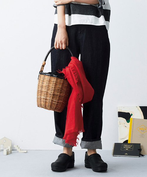 「ブカジーンズ」は、10.75オンスのしっかりとしたデニム生地で、ぶかぶかシルエットですが、少しテーパードをかけてひざより下は少しすっきりとさせました。この春のブカジーパンをベースにしていますが、タックをなくし5ポケットデザインに変えています。濃い目の色合いが秋らしくおしゃれです。