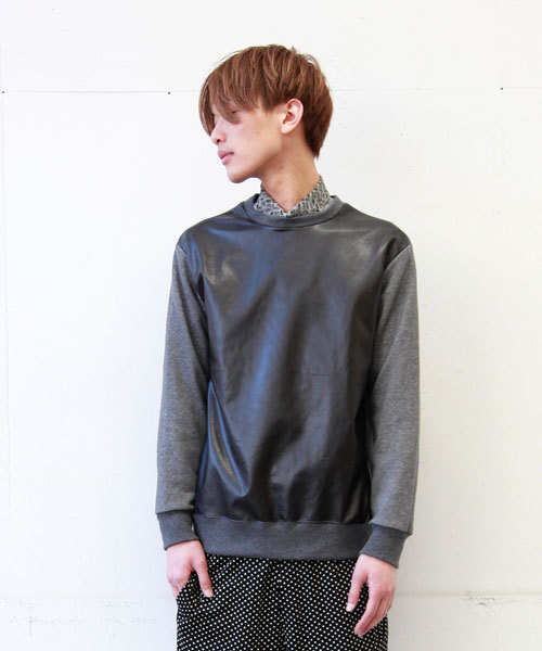 MIDWEST ディレクターズ・レーベル「603」のPVC切替スウェットプルオーバーです。 スポーティーなスウェット素材と、モードなPVC素材の切替デザインが特徴です。 ややコンパクトなシルエットですので、サルエルパンツなどゆったりとしたボトムスとの相性も抜群です。 ユニセックスでの着用も可能です。 1枚で着るのはモチロン、アウターなどとのレイヤードなど、 幅広くお楽しみいただけます。 model:H178 B85 W74 H89 着用サイズ:FREE