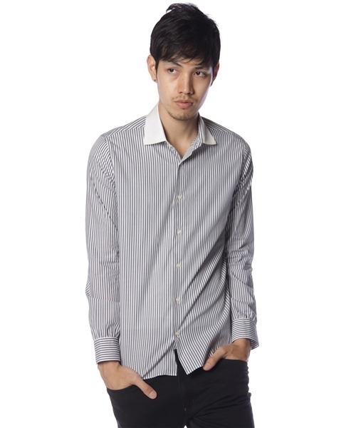 MIDWESTディレクターズ・レーベル「603]より、ストライプクレリックシャツのご紹介です。 上品なグレイのストライプがデザインされたこちらのシャツはフォーマルなシーンにもカジュアルなシーンにもご使用いただけます。model:H185 B90 W71 H91 着用サイズ:42