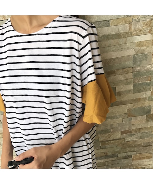 フレア袖の配色が大人可愛いゆったりボーダーカットソーです。 袖のボリュームフレアが二の腕をカバーしながら、コーデに華やかさをプラスしてくれる優秀な1枚です。 ボトムを選ばず、細身のスキニーでさらっと合わせたり、ワイドパンツにINしたスタイリングもおすすめです☆ ※身長161㎝ ◆代引き不可。 宅配便をご希望の方は、配送料600円(沖縄1500円)になりますので、商品欄の『ゆうパックご希望の方専用』を一緒にご注文お願い致します。 クリックポストにて代引きをお選び頂いた方は、390円プラスさせていただき、ゆうパックの代引きにて発送させていただきますのでご了承下さい。 ◆カラー ブルー、イエロー ◆サイズ 着丈:69cm、バスト:53cm 袖丈:39cm ※平置き採寸です。多少の誤差は予めご了承下さい。 ◆素材 綿 100%