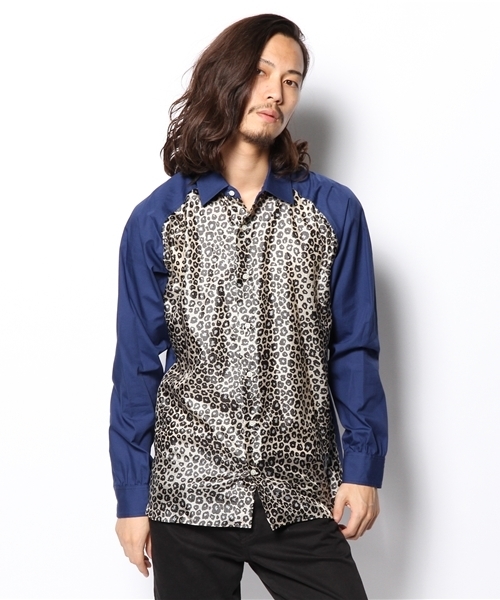 MIDWEST ディレクターズ・レーベル「603」 のレオパード×無地コンビネーションシャツです。 洗練感のあるブルーのお色味とレオパード柄のコンビネーションデザインは、一枚で主役級のアイテムです。 一枚で着ても、軽い羽織ものとして肩からかけたり、ウエストにまいてポイントにしても素敵です。
