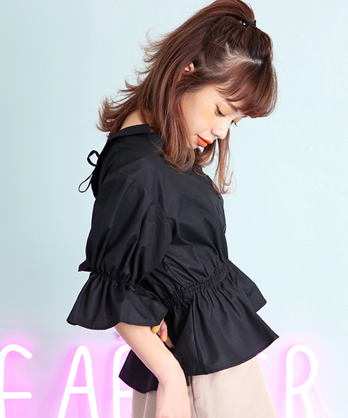~NICECLAUP 2017 autumn Collection~ トレンドのスキッパーブラウスにNew Ver. 1点投入で即旬顔になれるので、シンプルにデニムをあわせても様になる優秀アイテム。 ブラウスは着丈も長めなのでオトナッぽさが倍増!! 袖口はキャンディースリーブでトレンド感を更にプラスしてくれます。 ボタンを外して羽織としても使えるので気分で着こなしを変えて頂けます♡ シンプルなデザインなので、ON/OFF問わず着回せるのも嬉しいPOINT。 ○コーディネート○ ガーリー派は台形ミニスカートやフリルショートパンツなどミニボトムをON!! シンプル派はワイドパンツをON!! 今季トレンドのべロアやファーサンダルと合わせるのも◎ シンプルなデザインなので柄アイテムとも相性抜群です。