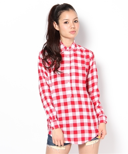 春らしさがいっぱい詰まったギンガムチェックシャツ。ゆったりめのシルエットでカジュアルスタイルにぴったりで、可愛らしい印象に仕上がります。襟裏、袖裏は小さいチェック柄出切り替えていて遊び心もプラス。またロールアップもできる仕様なのでシーズンを長く着回せる優れものです。少し長めの着丈なのでショートパンツやスキニーとの相性も◎。model:H171 B76 W57 H88 着用サイズ:SMALL