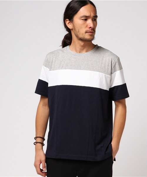 着こなしの主役になってくれる、3パターンのカラーブロックで構成された切り替えTシャツ。プリントTなどとはまた違ったデザイン性で、主張がありつつも落ち着いた印象はキープ!デニムやチノパンと合わせる王道スタイルも、これなら違いを演出できそうです。[クリーニング]洗濯機洗い可(弱く)ドライクリーニング可(F)