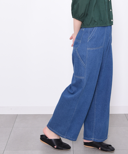 ショート丈のブラウスやニットキャミに合わせたいペインターパンツ。ヒップダーツを取りベルトマークをしやすくしたシルエットです。<non-no10月号掲載>