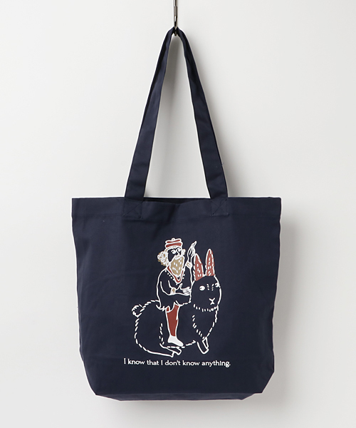 ソクラテスとうさぎのキッチュなプリントが特徴的なトートバッグA4もしっかり入る大きさなど使いやすさも◎デイリーにおすすめな手軽さが魅力的