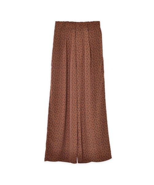 遊び心たっぷりのCUTEな柄のフルレングスパンツです。 すとんと落ちるストレートでワイドめのシルエットで、子供っぽくならずに着ていただけます。 ウエストはボタン開きでバックのみゴムが入っています。ベルトループも付いているので、お好みのベルトを合わせてトップスをインしたスタイルもすっきりと決まります! チョコチップクッキーのような色味のBrownと、使いやすいモノトーンのBlackの2色展開です。 Ts+コンバースを合わせてパンツをメインにした着こなしや、lacy tank top等のレースitemとのコーディネートがおすすめです。