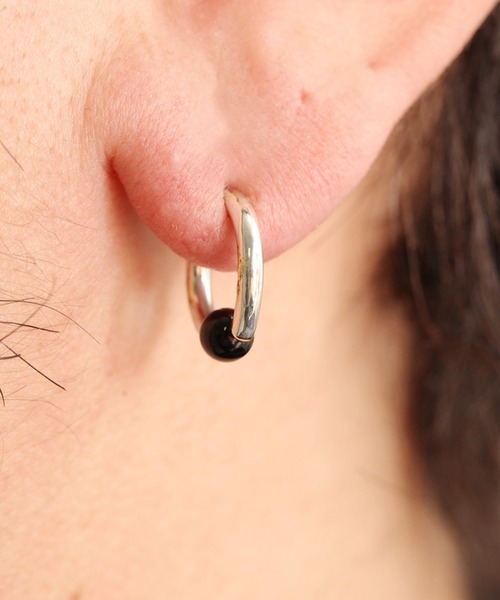 コーディネートしやすいシンプルデザインのキャプティブビーズリングボディピアス(S)です。 ボールには天然石のオニキス(4mm)を使用しています。約13~12ゲージ(太さ約2mm)のボディピアスです。 また、ランダムに金鑞を数カ所付着させたアクセントのゴールドの粒がラグジュアリーな土臭さを演出します。 ※こちらの商品はボディピアスです。ピアスホールがボディピアス用に拡張されてないと着用できません。ご注意下さい。 ※医療用ステンレスではなくシルバー925製です。 ※無理な曲げ閉めはキャッチであるビーズへの最適なテンションを損ない、着脱が難しくなります。キャピタルビーズリングに不慣れな方は専用のプライヤーを使用して着脱する事をお勧め致します。