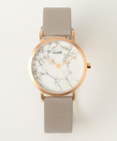 フェイスサイズ33mmの本物の大理石を使用したシリーズ「ラ・ロッシュ」。上質感漂うレザーバンドに、洗練された上品なフェイスデザインが、大人の女性にぴったりの仕上がりです。ベルトの付け替えはイージーレバーを採用しており、工具を使わず30秒でベルト交換ができる事も嬉しさの一つ。時計も軽い為使い勝手が良く、シーンを選ばず、ご愛用いただけます。プレゼントや保管時に嬉しいケース付き。<CLUSE>オランダ発のウォッチブランド<CLUSE (クルース)>。“あなたの最高の瞬間を切り取る”をコンセプトに、時間を見る一瞬さえも美しさを感じることができるように、エレガンスでシンプルにデザインされた時計を作成しています。※商品お届けの際の納品書は、お買上日を証明する書類として保証書と共に大切に保管して下さい。(コマ詰めや、修理などの際に必要となります。) ※こちらの時計をお買い求めの場合、電池サービスカードは付属しません。予めご了承ください。■こちらの商品は天然石を使用しておりますので、一点一点色味や柄に個体差がございます。店舗へお問い合わせの際は、全国のBEAUTY & YOUTH 各店舗まで下記の品名/品番をお申し付け下さい。品名:FC CLUSE MRBL 33 PG L/WC 品番:1843-499-0646