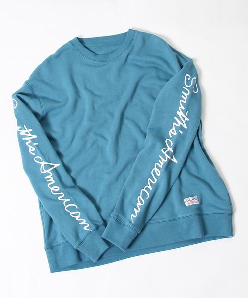 【支持が厚いSMITH別注にトレンドを乗せて】 ◆2017FW新作◆知る人ぞ知るアメリカの老舗ワークウェアブランド【SMITH】へ別注をリクエストした袖プリントスウェットが登場。■トレンドを突いた袖プリント(Smith Americanをプリント)■トレンドを突いたビッグシルエット■早い時期から着易い軽めの裏毛スウェット素材デザインコンシャスな一品で主役となるトップスです。90''sを意識したストリート感のあるゆるめのデニムなどとあわせたスタイリングがオススメです。ボトムスを細身にしてメリハリを利かせたVシルエットでも様になります。【SMITH(スミス)】1906年にニューヨークのブルックリンで、ボシュナック一家が創業したワークブランドSMITH AMERICAN【スミスアメリカン】。カバーオールやペインターパンツといったベーシックなワークウエアを製造、アメリカ各地の労働者に供給し、広く親しまれていた。その後、徐々にファッションシーンにシフトし始め、現在は各国に生産を委ねるライセンスアパレルブランドになった。本来のオーセンティックなワークウエアは、今では古着でも殆ど見かけることはなくなったが、当時SMITH【スミス】の生産を請け負っていたアメリカのファクトリーが協力し、日本向けに一部商品を復活させた。現在では有名なショップでも仕入れられたりしており、人気を博している。※実店舗と発売時期が異なることがございます。あらかじめご了承ください。【ご注意】※商品の色味につきまして、お客様のお使いのPCのモニター環境、設定により実際のカラーと画像の色味が違って見える場合が御座います。予めご了承の上、ご注文下さい。 店舗にお問い合わせの際は、全国のコーエン各店まで下記の品番をお申し付け下さい。品名:EC SMITH ロゴSWT 品番:7520-605-7114モデル)ホワイト⇒H162 B88 W77 H89 着用サイズL ※サイズをあげてオーバーサイズで着ております。ターコイズ⇒H173 B79 W77 H89 着用サイズL ※サイズをあげてオーバーサイズで着ております。