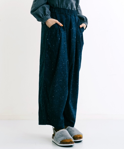 柔らかな肌触りと素材感が秋冬らしく特徴的なパンツです。タックが入った緩やかなテーパードのシルエットになっています。 ブラウスやニットと合わせ、秋冬の着こなしん楽しんで。