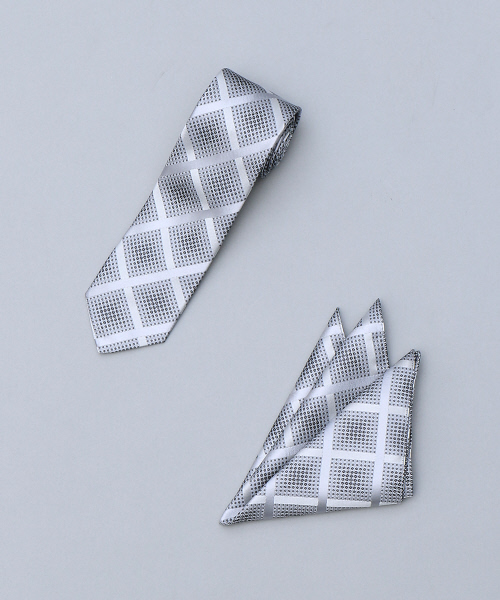 ドットでスクエア柄を表現したカジュアルながらも上品な印象のネクタイ。一本持っておくと便利なアイテム。