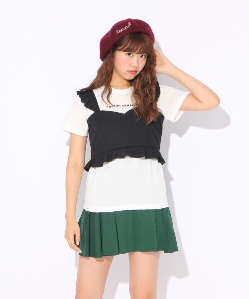 1枚でオシャレ度バツグン!ビスチェ×Tシャツのセットアイテム♪別々にも使えるアイテムなので、着回し自由自在っ☆シンプルデザインなので、大人見えもまちがいなしっ!!