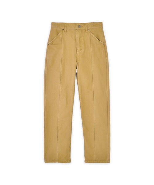 カタログ掲載商品のswitching denim pantsの素材違いのパンツです。 デニムパンツより少しだけ細身のシルエットで、すっきりとした印象に仕上げました。 センターの切替が縦のラインを強調してくれるので、美脚効果抜群です! ポケットや裾、ウエスト部分にはアタリ加工を施しています。 しっかりとしつつも厚すぎず、ごわつかない生地を使用しているので、履き心地も楽々◎ TOPSを選ばないカラーで、1本持っておくと便利なアイテムです。